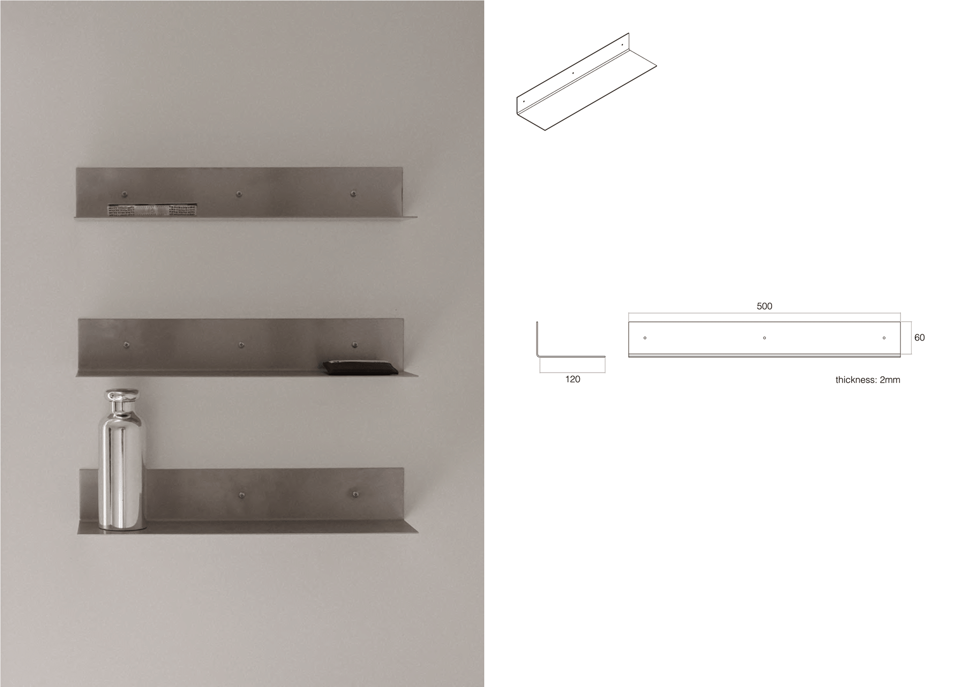 Frágil is a minimalistic metal furniture set for household use. With a geometry designed to achieve optimal use of each metal sheet, it minimizes production waste as well as the overall cost.