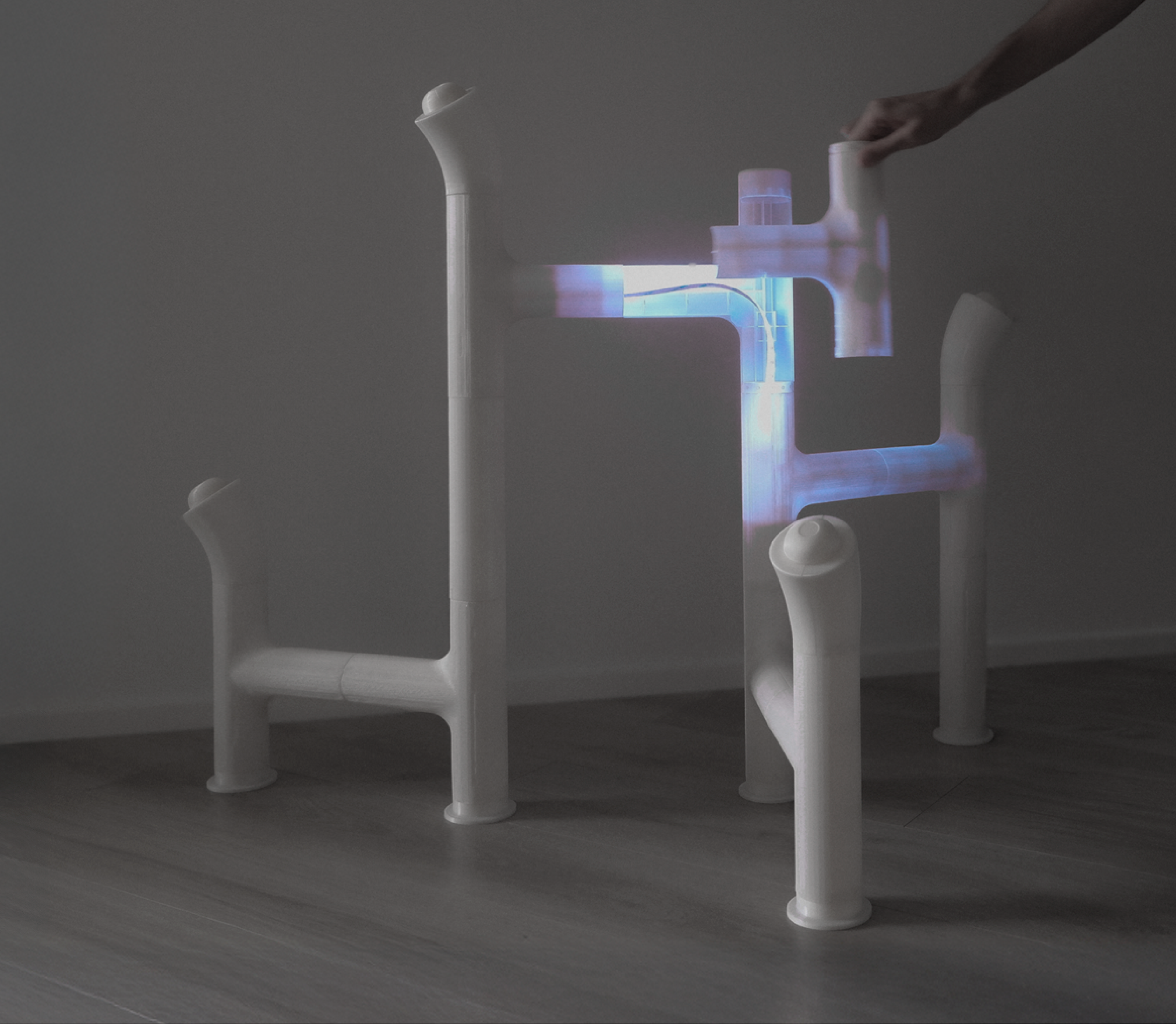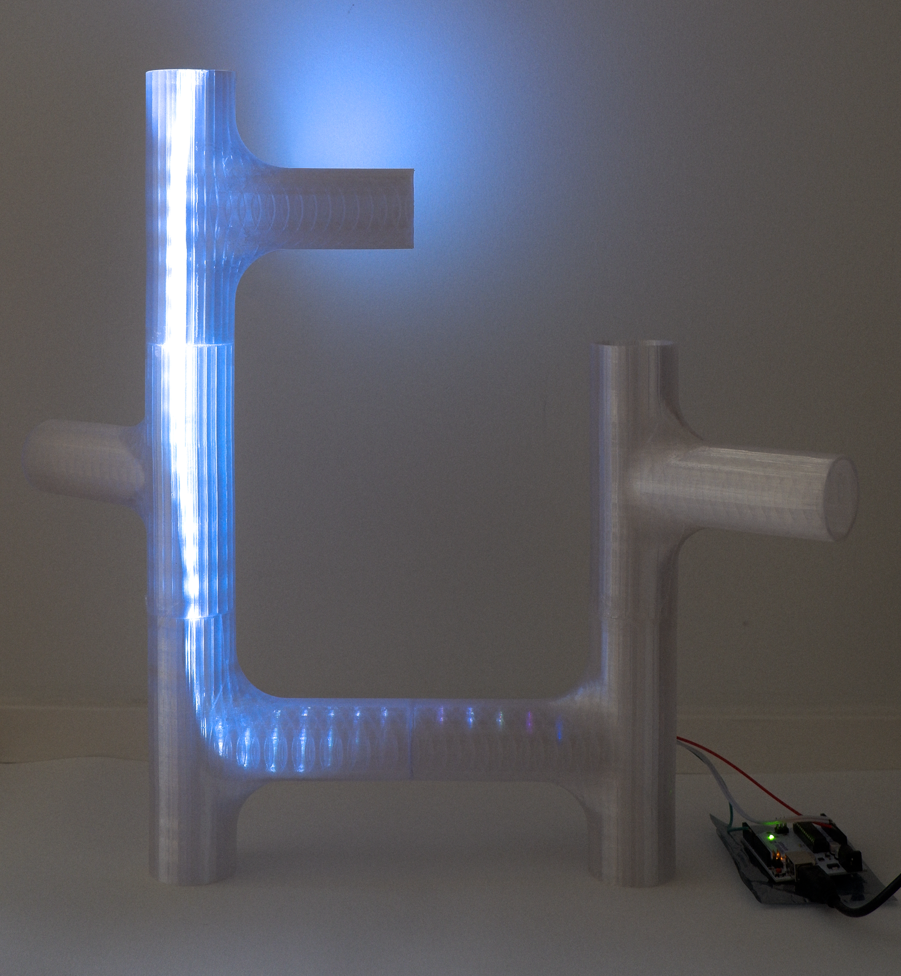 Product development stage, using the arduino tool with 3D printed elements to simulate the light movement.