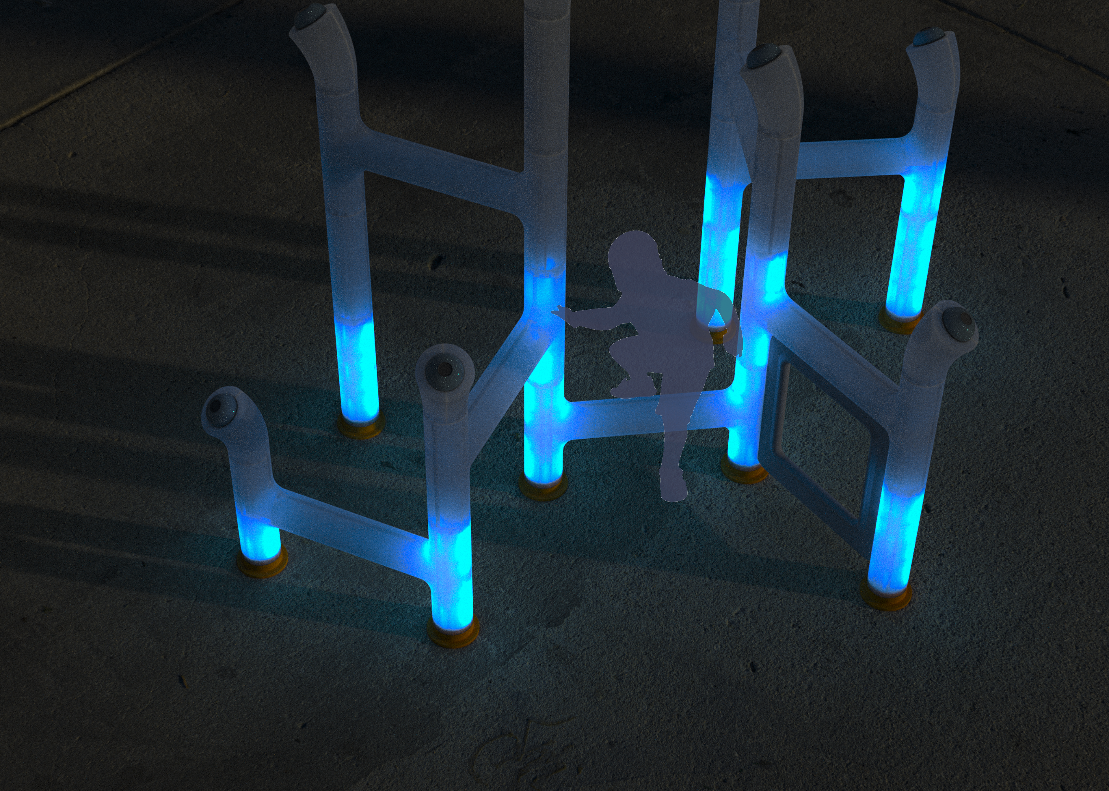 by using light as a multifunctional tool that bridges the space with the user through play.
