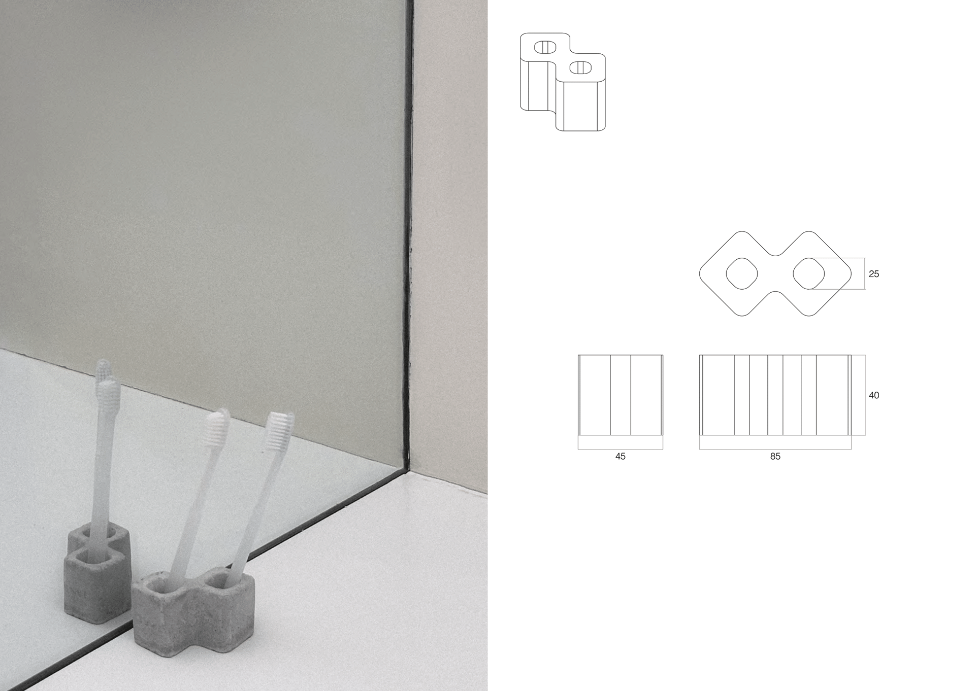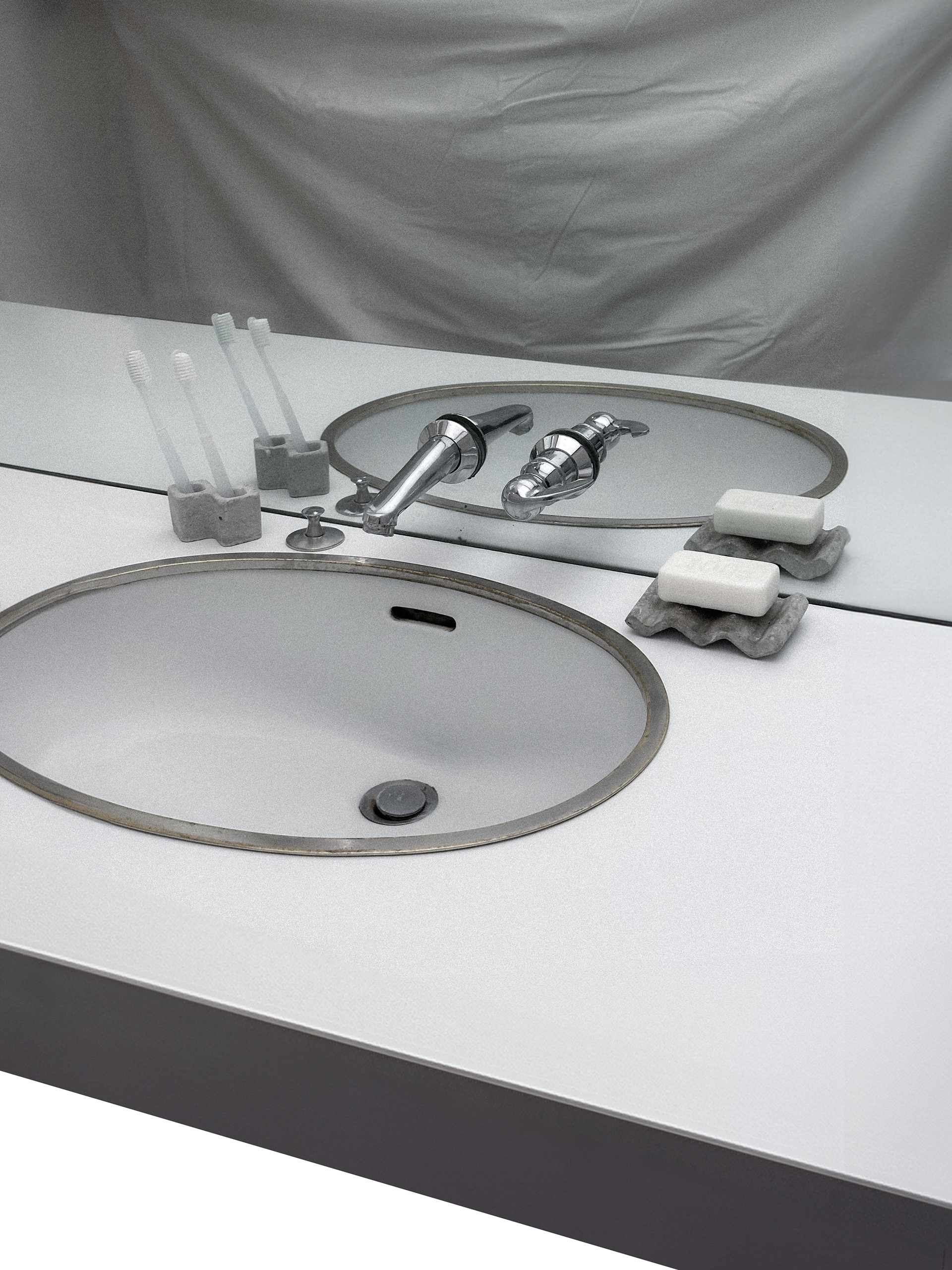 Sæt is a concept of a set for bathroom accessories. Made from microcement using a silicone and pine wood mold, it offers a clean style that fits harmoniously into a bathroom space. It has a pure, raw style that is emphasised by the use of microcement, giving it a robust, heavy factor.