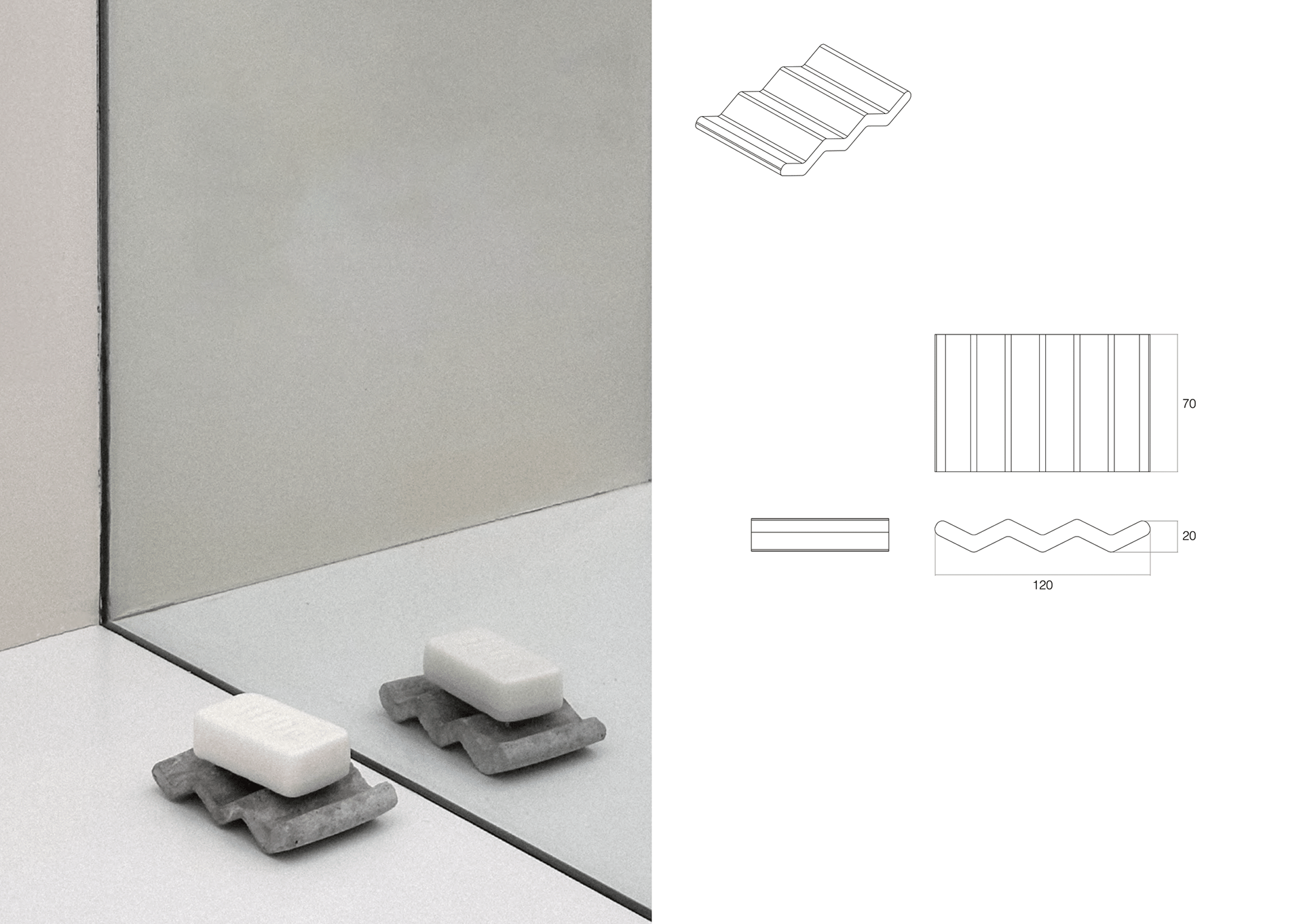 The two pieces, W and O, both of which share the same angular identity, have the ability to be used in a modular and versatile way. Several tests and prototypes were carried out as we discovered the different properties of microcement and its uses.